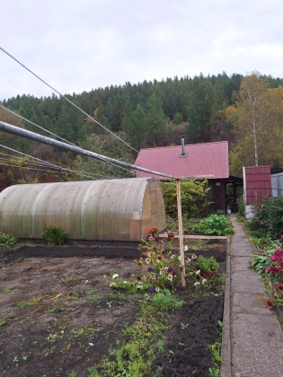 Дом расположен на земельном участке 5 соток рядом с лесной зоной возле ручья. Территория ухожена, с плодоносящим садом, карбонатная теплица. Плодородный слой земли позволяет выращивать овощи, фрукты, виноград и абрикосы. Дом расположен в маловетренной части города.